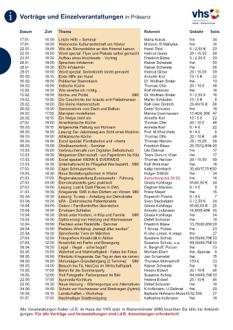 Alle Veranstaltungen finden i.d.R. im Haus der VHS statt, in Marienmünster (MM) beachten Sie bitte die Ankündi-
