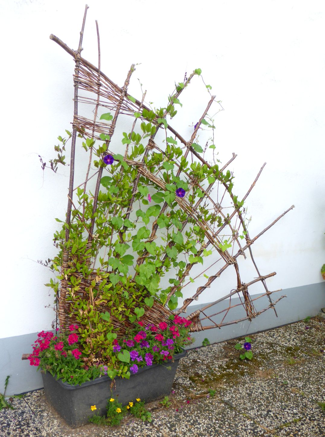 In diesem Kurs werden Rankhilfen aus Weiden hergestellt, die Platz an einer Mauer finden oder als Trennwand im Garten dienen. Sie sind auch im Winter ohne Bewuchs ein echter Blickfang. Im Laufe des Sommers verwandeln Pflanzen die Flechtwerke zu grünen Wänden.